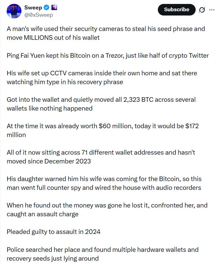 Beware of exposing your seed phrase to home security systems 🛡️.
