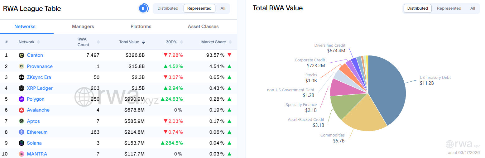 Tether’s tokenized gold token, XAUT, is up 10% and the Paxos Gold token, PAXG, is up 7.8% during the past 30 days, which pushed tokenized commodities past $5.7 billion, according to RWA data.